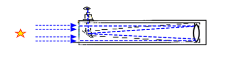Note: Drawings are not to scale. Dotted lines represent the path of light from when it enters the scope to where it exits at the eyepiece.